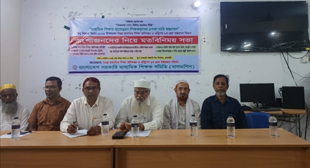 ‘মাধ্যমিক শিক্ষার মানোন্নয়ন, শিক্ষকবৃন্দের ৫ দফা দাবি বাস্তবায়ন’ স্লোগানে বিশ্ব শিক্ষক দিবস-২০২৫ উপলক্ষে স্বতন্ত্র মাধ্যমিক শিক্ষা অধিদপ্তর ও এন্ট্রিপদ ৯ম গ্রেড বাস্তবায়ন বিষয়ক অংশীজনদের নিয়ে মতবিনিময় সভা অনুষ্ঠিত হয়েছে।
