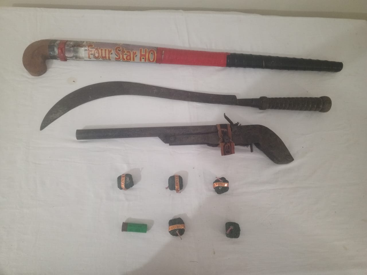 পাংশা মডেল থানা সূত্রে জানা যায়, উদ্ধার হওয়া তালিকায় রয়েছে, ১টি হাতে তৈরি সচল ওয়ান শুটার পাইপ গান, ১টি সবুজ রংয়ের তাজা কার্তুজ। ৫টি সবুজ রংয়ের পটকা, ১টি হাঁসুয়া ও ১টি হকিস্টিক।