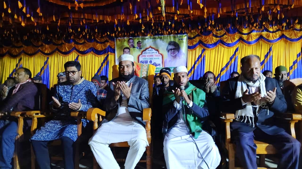 মঙ্গলবার (০২ ডিসেম্বর) বাদ মাগরিব উপজেলার কালিকাপুর ইউনিয়নের এ.জেড.এম ছাকেন উদ্দিন উচ্চ বিদ্যালয় মাঠে এ দোয়া মাহফিলের আয়োজন করা হয়। এর আগে স্থানীয় মাদ্রাসার শিক্ষার্থীরা বাদ আছর থেকে মাগরিব পর্যন্ত পবিত্র কোরআন তেলাওয়াত করেন।