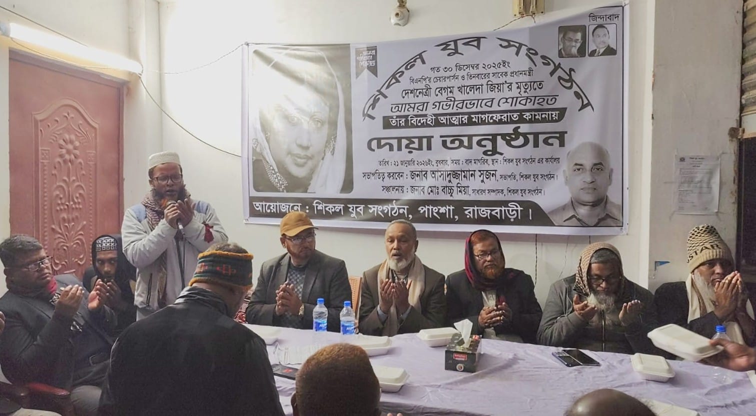 রাজবাড়ীর পাংশায় শিকল যুব সংগঠনের উদ্যোগে সাবেক প্রধানমন্ত্রী ও বিএনপি চেয়ারপারসন বেগম খালেদা জিয়ার আত্মার মাগফিরাত কামনায় দোয়া মাহফিল অনুষ্ঠিত হয়েছে।
