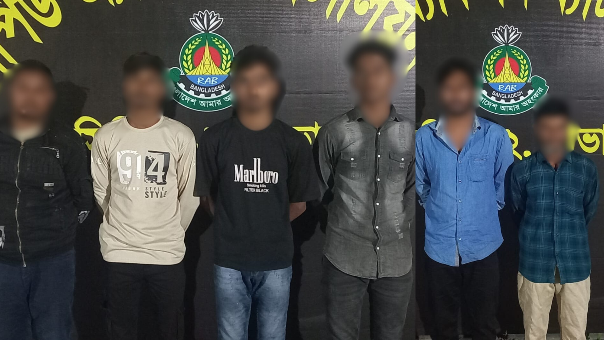 গ্রেফতারকৃতরা হলেন-কামিল সর্দার (৩৫), রকি শেখ (২৬), রাইসুল ইসলাম আছাদ ওরফে তুফান সর্দার (২২), হাসান সর্দার (২৩), মো. বাশার শেখ (২৬) ও মো. শুভ শেখ (২০)।