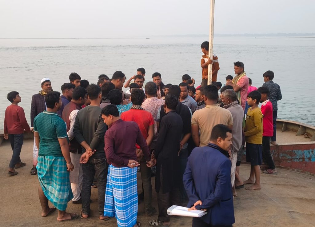 দৌলতদিয়া ফেরিঘাটে ধস্তাধস্তির ঘটনায় পদ্মা নদীতে পড়ে যুবক নিখোঁজ