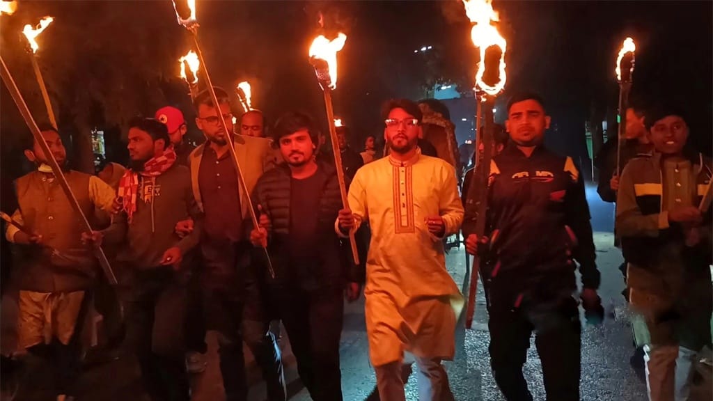 ওসমান হাদিকে গুলি: রাজবাড়ীতে মশাল মিছিল