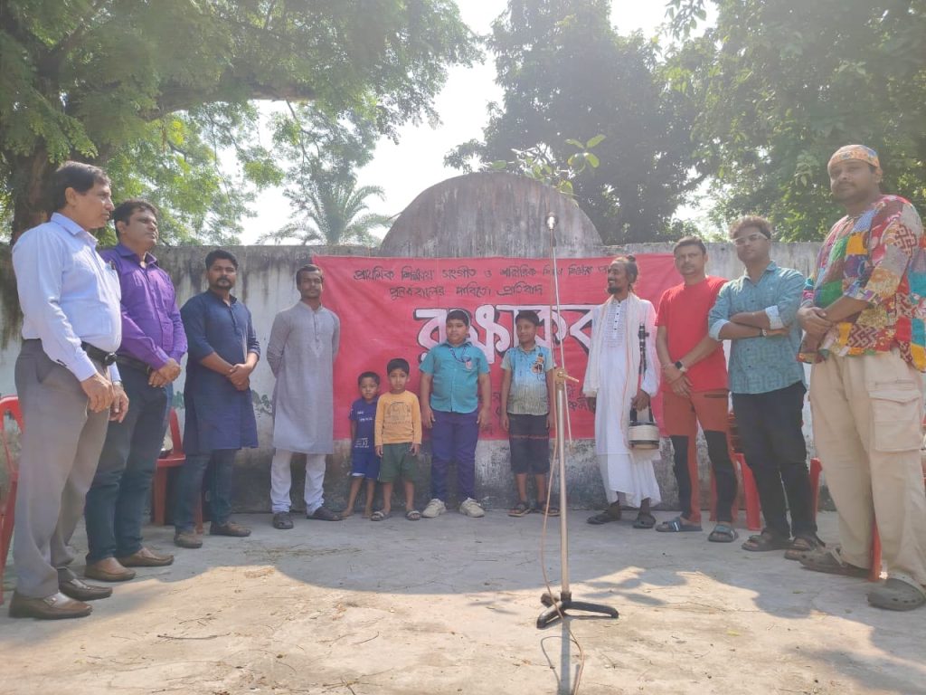 রাজবাড়ীতে প্রাথমিকের সঙ্গীত ও শারীরিক শিক্ষা শিক্ষক পদ পুনর্বহালের দাবিতে সাংস্কৃতিক মিছিল ও সমাবেশ