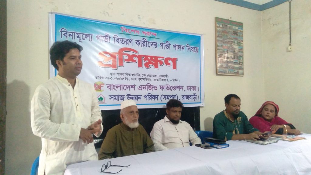রাজবাড়ীতে সমপদ এনজিওর উদ্যোগে গাভী পালনে প্রশিক্ষণ অনুষ্ঠিত