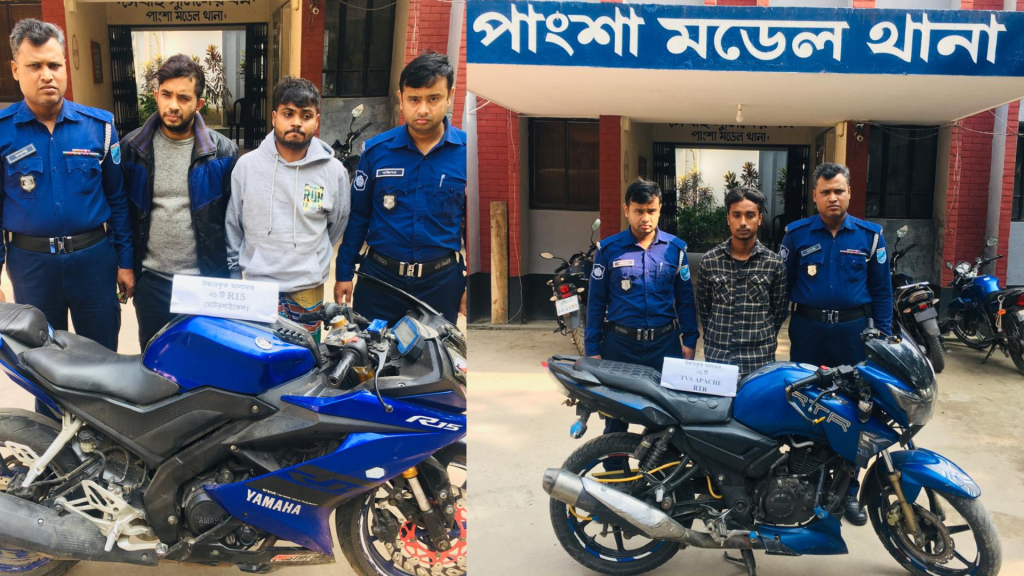 পাংশায় পৃথক অভিযানে দুই চোরাই মোটরসাইকেলসহ ৩ জন গ্রেফতার