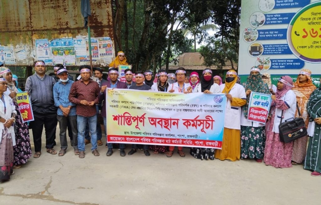 এক দফা দাবিতে পাংশায় পরিবার পরিকল্পনা কর্মীদের শান্তিপূর্ণ অবস্থান কর্মসূচি