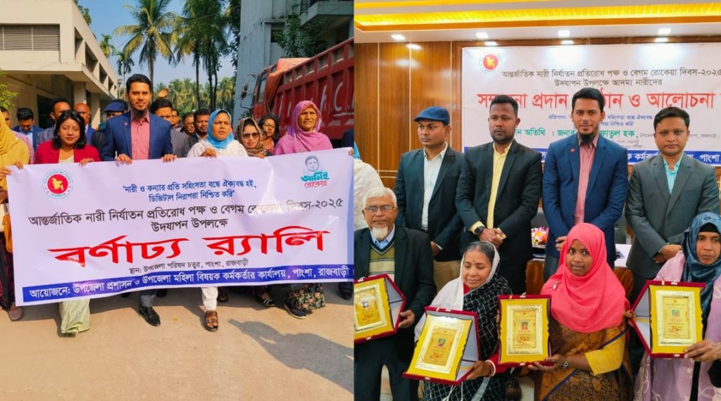 এস,কে পাল সমীর : “নারী ও কন্যার প্রতি সহিংসতা বন্ধে ঐক্যবদ্ধ হই, ডিজিটাল নিরাপত্তা নিশ্চিত করি” এ প্রতিপাদ্যে রাজবাড়ীর পাংশায় আন্তর্জাতিক নারী নির্যাতন প্রতিরোধ পক্ষ ও বেগম রোকেয়া দিবস-২০২৫ পালিত হয়েছে। মঙ্গলবার (৯ ডিসেম্বর) পাংশা উপজেলা প্রশাসন ও উপজেলা মহিলা বিষয়ক কর্মকর্তার কার্যালয়ের উদ্যোগে দিবসটি পালন করা হয়। দিবসটি উপলক্ষে সকালে উপজেলা পরিষদ চত্বর থেকে […]