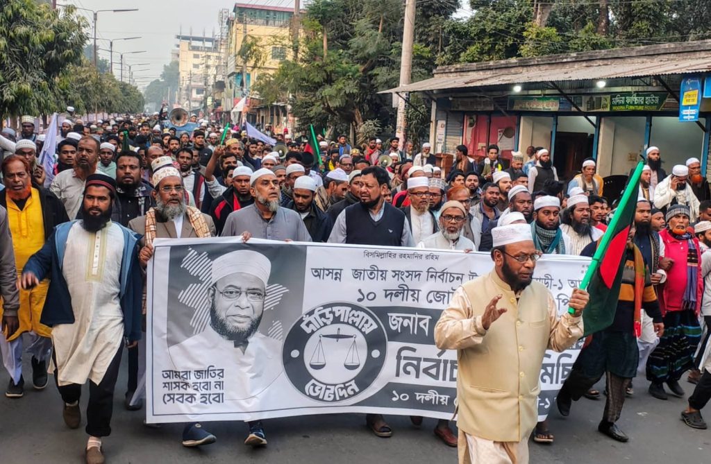 রাজবাড়ী-১ আসনে ১০ দলীয় জোটের দাঁড়িপাল্লার প্রার্থী অ্যাডভোকেট নূরুল ইসলামের গণমিছিল