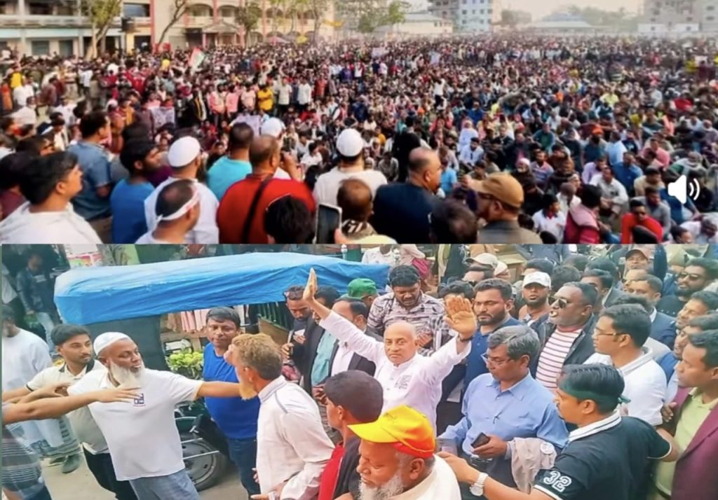 এস,কে পাল সমীর : রাজবাড়ী-২ (পাংশা–কালুখালী–বালিয়াকান্দি) আসনে বাংলাদেশ জাতীয়তাবাদী দল (বিএনপি) মনোনীত ধানের শীষের প্রার্থী মো. হারুন-অর-রশিদের সমর্থনে পাংশায় এক বিশাল নির্বাচনী গণমিছিল অনুষ্ঠিত হয়েছে। রবিবার (৯ ফেব্রুয়ারি) বিকাল ৫টায় পাংশা জর্জ সরকারি উচ্চ বিদ্যালয় প্রাঙ্গণ থেকে গণমিছিলটি শুরু হয়। পরে মিছিলটি পাংশা বাজারের প্রধান সড়কসহ বিভিন্ন গুরুত্বপূর্ণ সড়ক প্রদক্ষিণ করে। গণমিছিলে রাজবাড়ী-২ আসনে ধানের […]